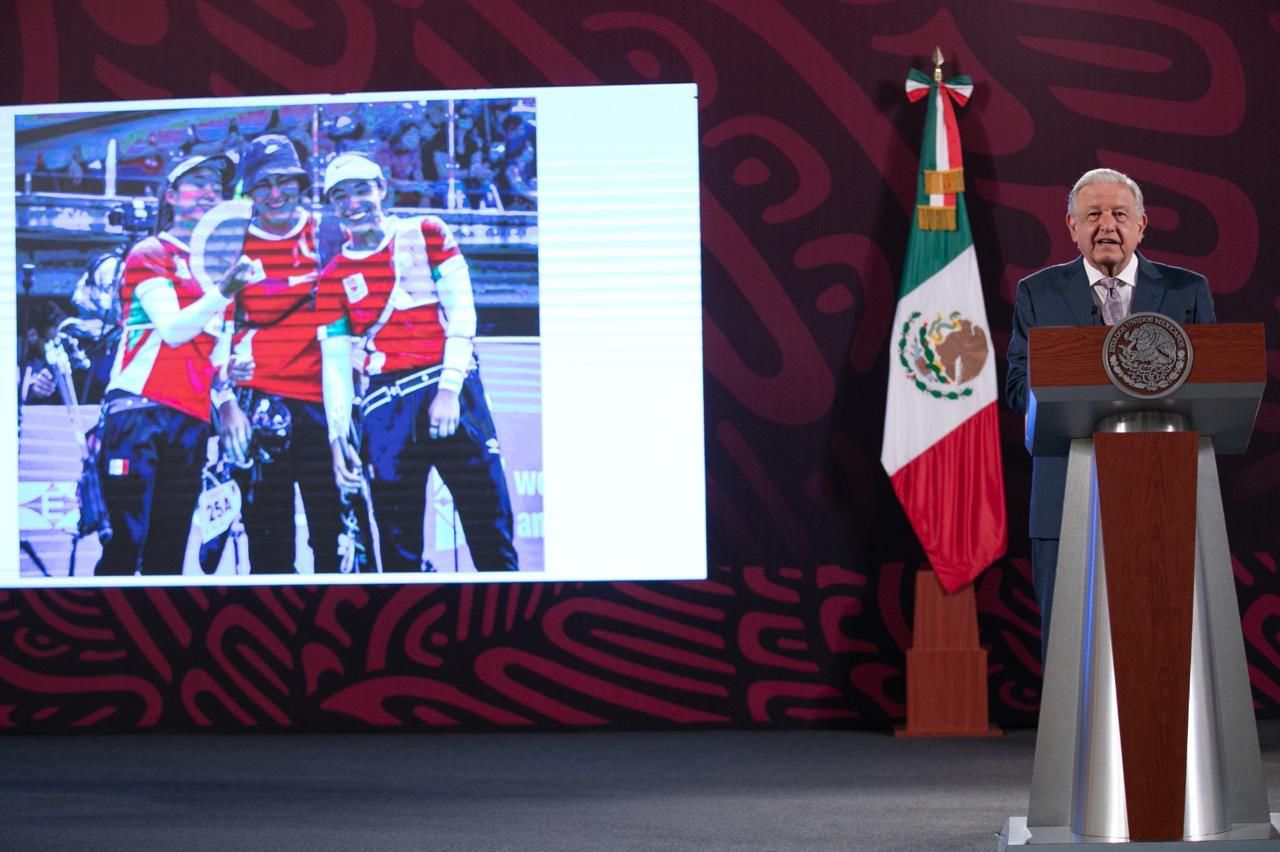 “Porque lo primero es lo primero, quiero felicitar a Alejandra Valencia, Ana Paula Vásquez y Ángela Ruíz, obtuvieron medalla de bronce por equipos en Tiro de Arco, fíjense, yo me enteré en Marquelia, allá en Guerrero, donde también están pendientes de lo que pasa en las olimpiadas”. Indicó.