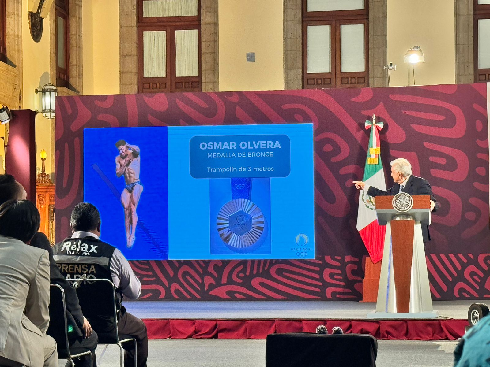 Carlos Guzmán | Corresponsal CDMX.- Este jueves, el presidente de México, Andrés Manuel López Obrador, celebró que el clavadista Osmar Olvera obtuvo esta mañana la medalla de bronce en el trampolín de 3 metros individual en los Juegos Olímpicos de París 2024, adelantando que cuando regrese toda la delegación mexicana «nos vamos a reunir aquí y se les da un apoyo, una recompensa».