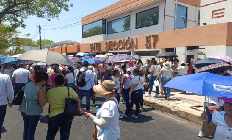 Este martes, cientos de maestros se manifestaron en las instalaciones de la Sección 33 del Sindicato Nacional de Trabajadores de la Educación (SNTE), en Mérida, para exigir mejores condiciones laborales, principalmente un incremento salarial.