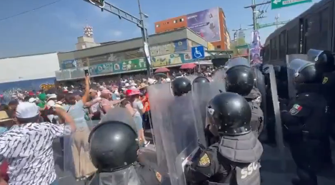 En los videos que circulan en redes sociales se puede observar agresiones entre los manifestantes y la policía, además se puede escuchar que una mujer explica a los policías que son personas ciegas.