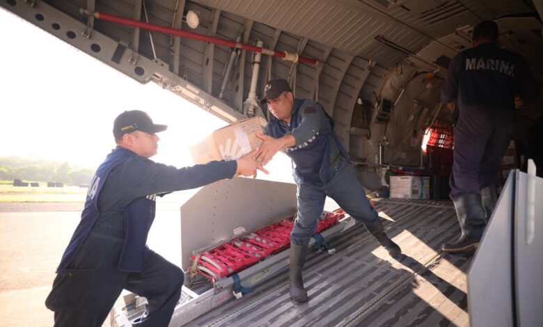 “Hoy (miércoles) tuvimos 17 naves que estuvieron haciendo 96 operaciones de sobre vuelos y aterrizaje para llevar despensas, agua, víveres, servicios de salud y rescatar a personas en diferentes municipios, comunidades en la Sierra de Huayacocotla, también en El Higo, en Ixhuatlán de Madero”.