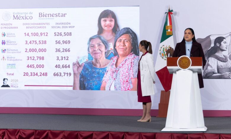 Carlos Guzmán | Corresponsal CDMX.- La secretaria de Bienestar, Ariadna Montiel Reyes, informó que el gobierno de México inició 2026 con una dispersión récord de recursos sociales, que tan solo en el bimestre enero–febrero superará los 99 mil millones de pesos, y con la meta de cerrar el año con 20.3 millones de derechohabientes de pensiones y programas sociales.