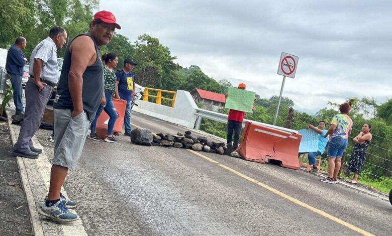 Ante su inconformidad, pobladores con piedras y palos bloquearon el paso a los vehículos en ambos sentidos en la carretera Misantla-Martínez de la Torre, a la altura del Puente Culebras en Santa Cruz, Hidalgo, Misantla.