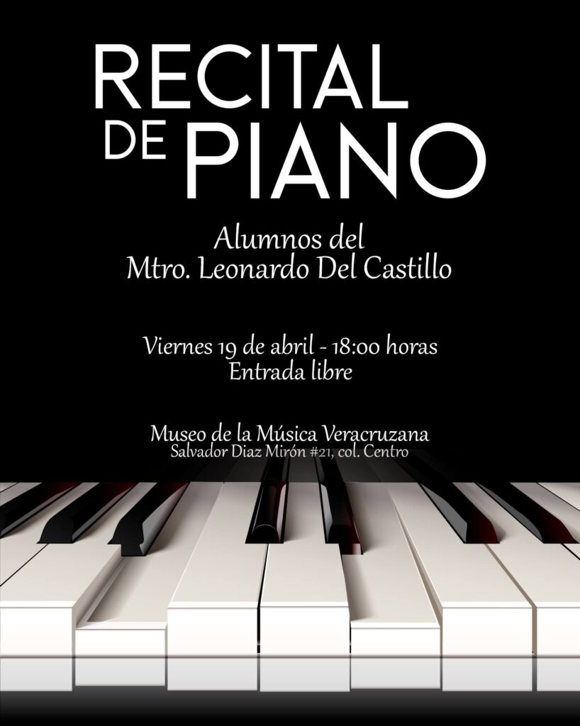 Además, los alumnos del Mtro. Leonardo del Castillo ofrecerán su recital de piano este 19 de abril a las 18:00 horas.