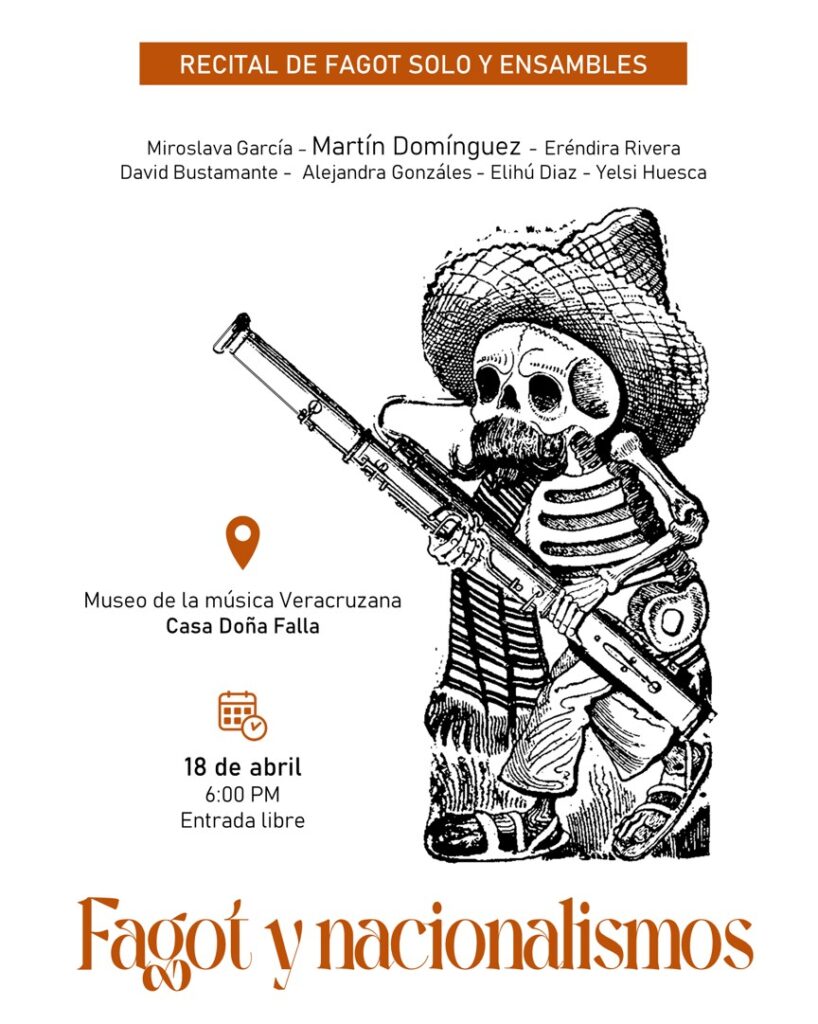 El mmiércolesiercoles 17 de abril del 2024 a las 18:00 horas se llevará a cabo los «Ariles» en instalación de Syria Cardiel y presentación musical de Joxyer Zamudio. Este 18 de abril a las 18:00 horas dará inicio el concierto de Fagot y nacionalismos con diversos intérpretes.