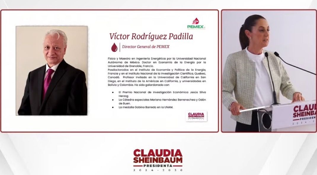 Carlos Guzmán | Corresponsal CDMX.- Claudia Sheinbaum, presidenta electa, nombró este lunes a Víctor Rodríguez Padilla como nuevo titular de Petróleos Mexicanos (Pemex) a partir del 1 de octubre.