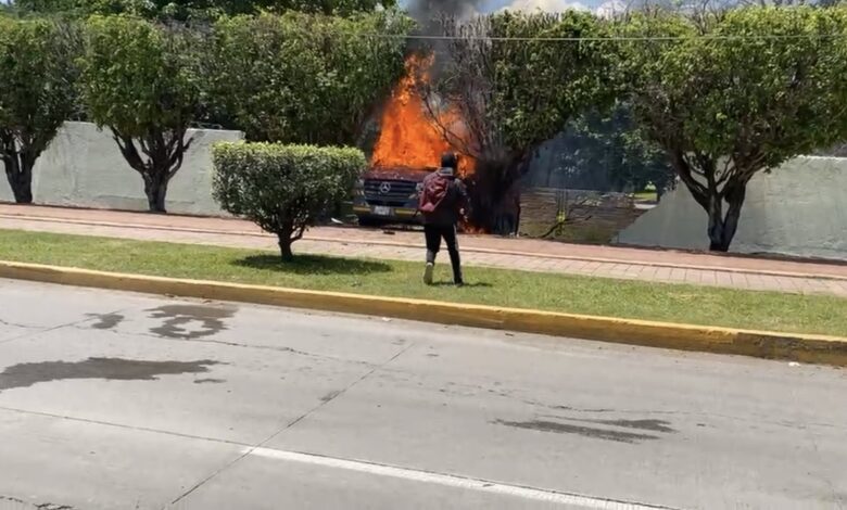 Normalistas estrellan y queman vehículo frente a cuartel de Iguala