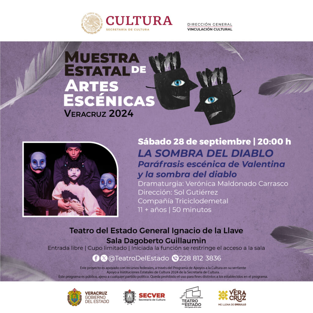 Redacción Xalapa.- El Teatro del Estado «Gral. Ignacio de la Llave» invitó al público mayor de 11 años a disfrutar de la puesta en escena de la obra «La sombra del Diablo. Paráfrasis escénica de Valentina y la sombra del Diablo».