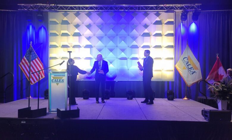 Xalapa, Ver., miércoles 19 de noviembre del 2025.- La Secretaría de Seguridad Pública (SSP) obtuvo la acreditación en el Programa de Aplicación de la Ley de CALEA y el reconocimiento por excelencia Triple Arco (Tri-Arc Award), uno de los distintivos internacionales más importantes en materia de seguridad pública, durante la Conferencia de Otoño de CALEA, realizada en Jacksonville, Florida.