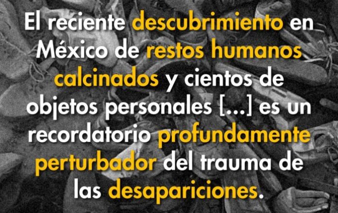 “El reciente descubrimiento en México de restos humanos calcinados y cientos de objetos personales, como zapatos y ropa, en un rancho presuntamente operado por un cártel de drogas, es un recordatorio profundamente perturbador del trauma de las desapariciones vinculadas al crimen organizado en el país”, subrayó Elizabeth Throssell, portavoz del Alto Comisionado de las Naciones Unidas para los Derechos Humanos.