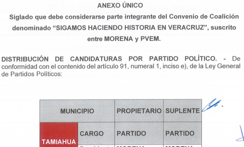 OPLE aprueba convenio de coalición de Morena y PVEM en elección de Tamiahua