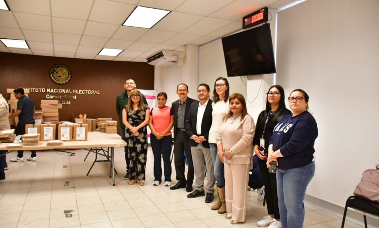 La documentación electoral arribó a las oficinas de la JLE del INE en Veracruz para el conteo, sellado y elaboración de los paquetes electorales que deberán entregarse a la ciudadanía inscrita; el funcionariado del INE que vigiló esta actividad fue, el Vocal Ejecutivo, Josué Cervantes Martínez; la Consejera en Veracruz, Olivia Aguilar Dorantes; la Vocal Secretaria, Christian Mariana Ceballos Garduño; y la Vocal de Organización, Silvia Meléndez Pérez.