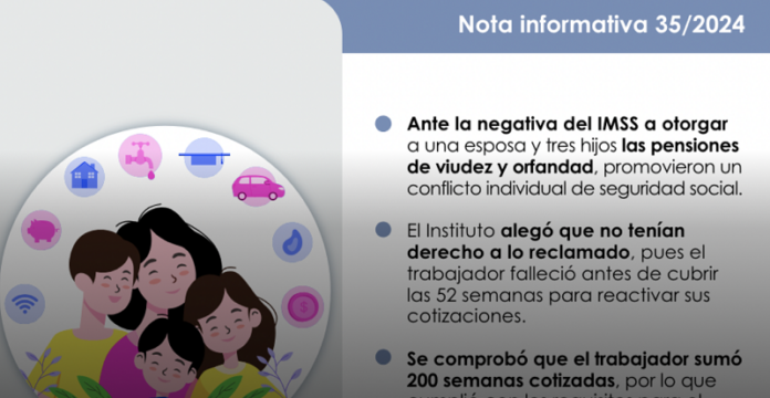 El Primer Tribunal Laboral dictó sentencia condenatoria contra el Instituto Mexicano del Seguro Social (IMSS) otorgue pensión de viudez y orfandad por fallecimiento de un trabajador, protegiendo así el derecho humano a la seguridad social.