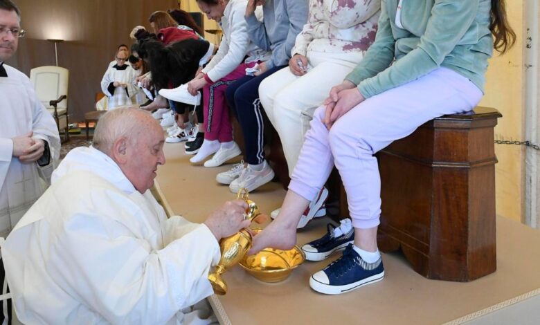Papa Francisco lava los pies de 12 reclusas por celebración de Jueves Santo