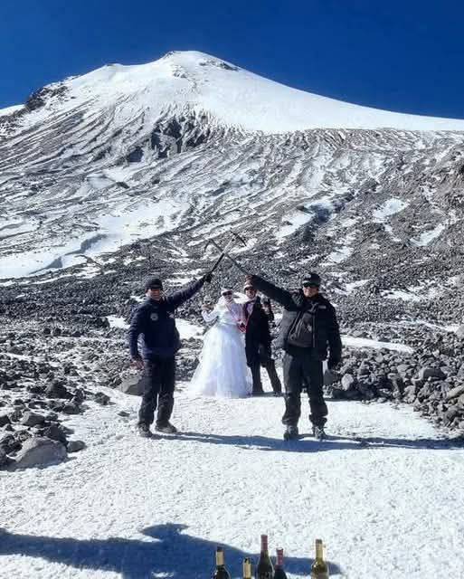 En una ceremonia única, Mayra y Carlos, dos apasionados del alpinismo, decidieron sellar su amor en el volcán Citlaltépetl, la punta más alta de México, a más de 5 mil 200 metros sobre el nivel del mar.
