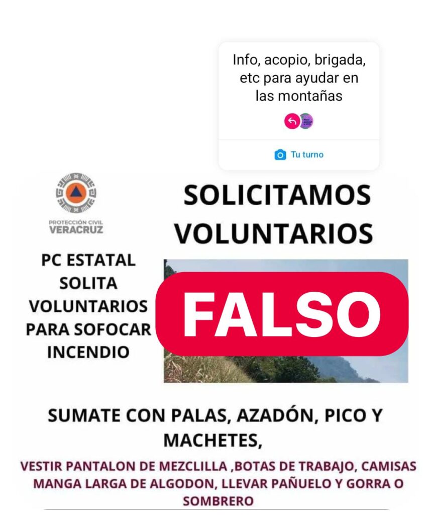 Yhadira Paredes, Xalapa, Ver.- La Secretaría de Protección Civil del Estado alertó sobre la publicación falsa de solicitud de voluntarios para combatir incendios forestales en diversos puntos de la entidad y aclaró que las brigadas son integradas por combatientes capacitados.