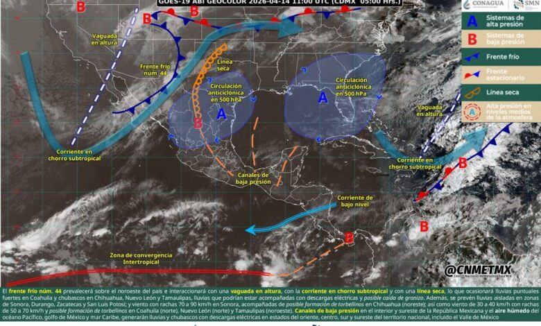 Asimismo, el SMN advierte la presencia de intervalos de chubascos y lluvias puntuales fuertes en algunas regiones del estado, especialmente en zonas montañosas y del sur, derivado de la entrada de humedad del Golfo de México.