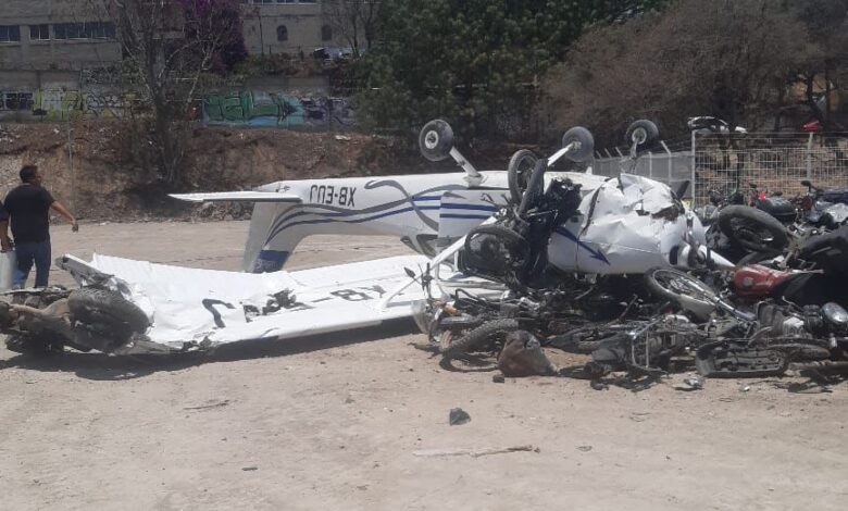 En ese momento, la avioneta no logró conseguir la aceleración necesaria por lo que se cayó al interior de una empresa que resguarda vehículos de aseguradoras.