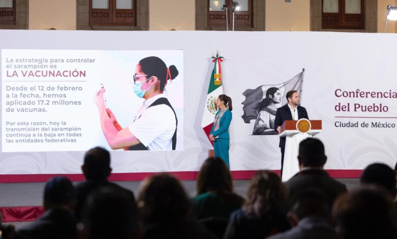 Carlos Guzmán | Corresponsal CDMX.- La estrategia de vacunación masiva contra el sarampión en México comienza a rendir resultados claros: la velocidad de transmisión del virus se ha reducido de manera sostenida en todo el país, tras la aplicación de 17.2 millones de dosis en apenas siete semanas, informó el subsecretario de Integración Sectorial y Coordinación de Servicios de Atención Médica, Eduardo Clark.