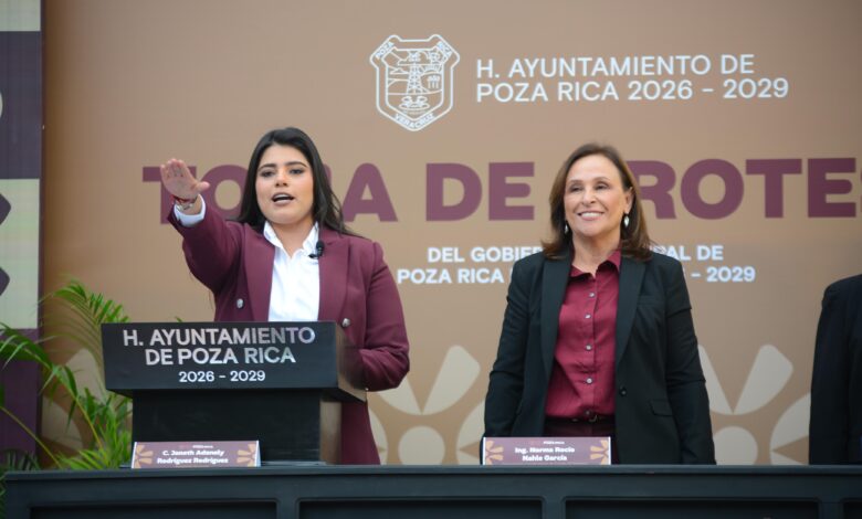 Poza Rica, Ver., miércoles 31 de diciembre de 2025.– En el marco del relevo de administraciones en los 212 ayuntamientos de Veracruz, la gobernadora Rocío Nahle García asistió a la Sesión Solemne de Cabildo en la que Janeth Adanely Rodríguez Rodríguez rindió protesta de ley como Presidenta Municipal Constitucional de Poza Rica para el periodo 2026–2029 y refrendó el respaldo total del Gobierno del Estado para la recuperación, reconstrucción y desarrollo del municipio.