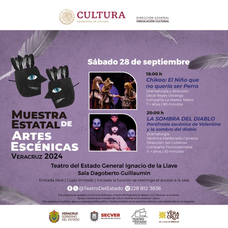 Redacción Xalapa.-El Secretaría de Cultura de Veracruz, en coordinación con la Secretaría de Cultura federal, presenta el programa de actividades de la Muestra Estatal de Artes Escénicas Veracruz (MEAEV) 2024, un espacio dedicado al diálogo y la difusión de la labor artística de las y los creadores escénicos de la entidad, que se llevará a cabo del sábado 21 al domingo 29 de septiembre del 2024 en el Teatro del Estado General Ignacio de la Llave.