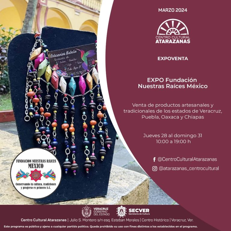 Redacción Xalapa.- La Secretaría de Cultura de Veracruz invitó al público en general a visitar la expoventa artesanal de la «Fundación Nuestras Raíces México«, que tendrá lugar en el Centro Cultural Atarazanas del jueves 28 al domingo 31 de marzo, en horario de 10:00 a 19:00 horas con entrada gratuita.