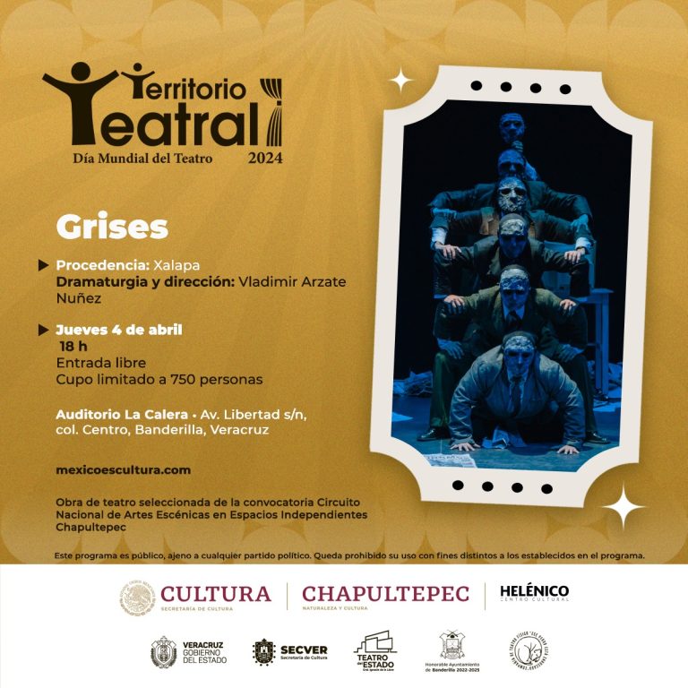 El jueves 4 de abril a las 18:00 horas, en el auditorio La Calera del municipio de Banderilla, se presentará la obra Grises de la compañía «Ese perro está enroscado», bajo la dirección y dramaturgia de Vladimir Arzate.