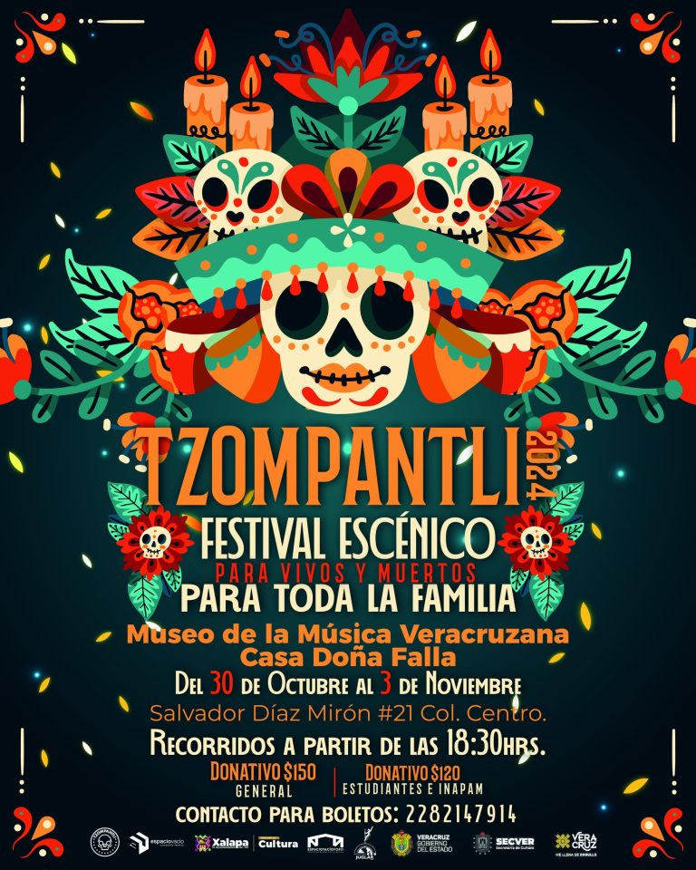 La Secretaría de Cultura de Veracruz reafirma su compromiso con la preservación y promoción de las tradiciones culturales de la entidad que conforman nuestra identidad invitando a la población de Xalapa y la región a que visiten y descubran el talento artístico que ofrece la 9ª emisión de Tzompantli: Festival Escénico para Vivos y Muertos a partir del miércoles 30 de octubre al domingo 3 de noviembre en el Museo de la Música Veracruzana “Casa Doña Falla” de Xalapa, Veracruz.