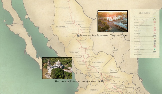 De los numerosos sitios que forman parte del Camino Real de Tierra Adentro –de casi 2,900 kilómetros– se seleccionaron dos monumentos históricos: el Templo de San Bartolomé, localizado en Valle de Allende, en Chihuahua, con más de 200 años de historia; y la Ex Hacienda de Peñuelas, en Aguascalientes, cuyos antecedentes constructivos se remontan a 1575.