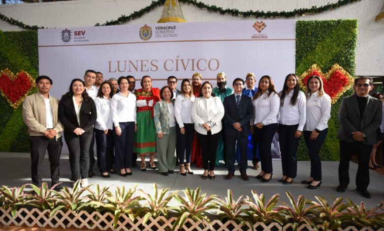La titular de la SEV, Claudia Tello Espinosa, encabezó el Lunes Cívico y entregó juguetes a los hijos de trabajadores; cortó la tradicional rosca en la explanada de las oficinas centrales, acompañada por los Reyes Magos y servidores públicos.