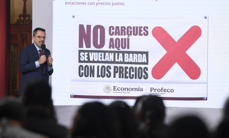 El titular de Profeco indicó que las lonas con la leyenda “No cargues aquí, se vuelan la barda con los precios” se colocarán en la mayoría del país, mientras el promedio nacional se ubica en 23.69 pesos.