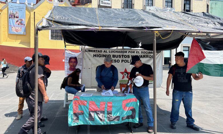 Los integrantes del FNLS exigieron la liberación de su compañero Higinio Bustos Navarro, a quien consideran un preso político en el estado de Veracruz.
