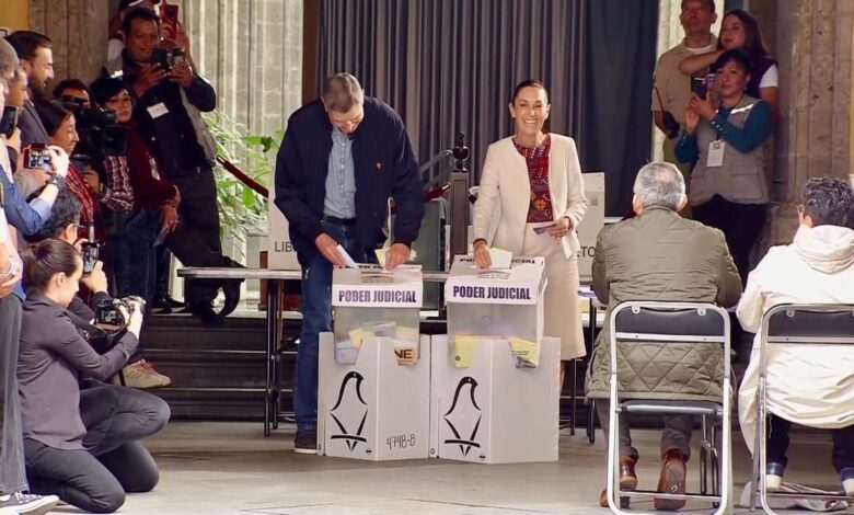 Sheinbaum sale a votar en la elección judicial; celebra la democracia