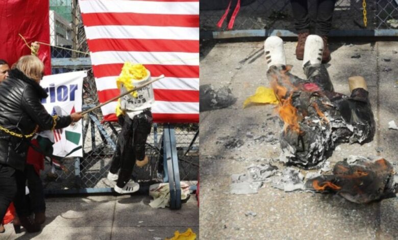 Queman piñata de Trump frente a embajada de EU en México