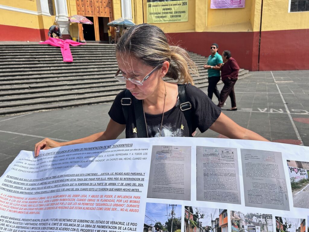 Se trata de Susan Bonilla García, quien habita en la zona desde hace más de 30 años y acusó que hay indignación por la falta de alineación en esta obra aprobada por la Dirección de Desarrollo Urbano del ayuntamiento de Xalapa.