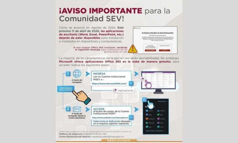 Maestros difundieron en redes sociales que la SEV les notificó el fin de la gratuidad de la paquetería de escritorio de Office 365 para maestros y personal administrativo, lo que tendrá un impacto en la preparación de los contenidos escolares.