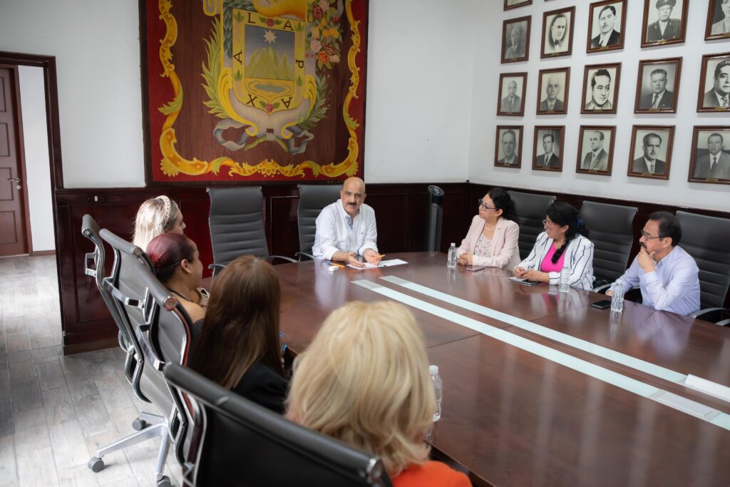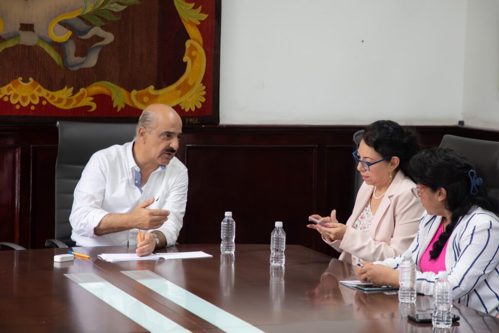Xalapa, Ver.- El presidente municipal, Ricardo Ahued Bardahuil se reunió con integrantes de la agrupación Comercio Unidos de Xalapa, con quienes dialogó sobre diversas iniciativas relacionadas con la regulación de la imagen urbana en el Centro Histórico, el abasto de agua y la vialidad.