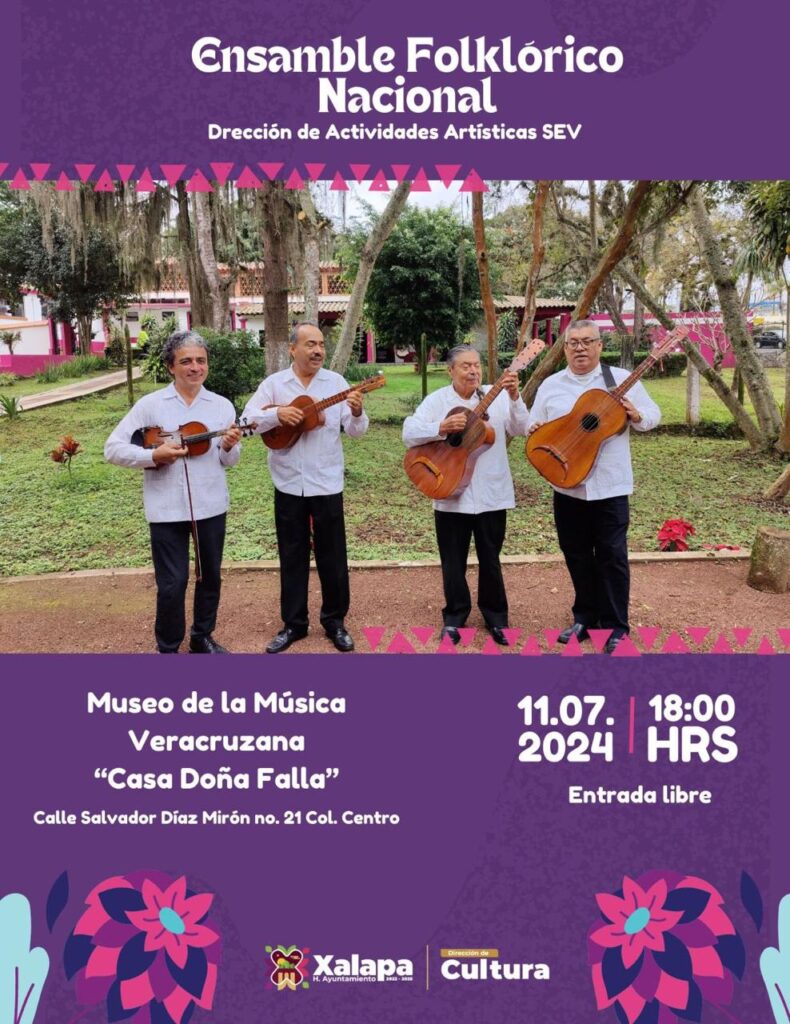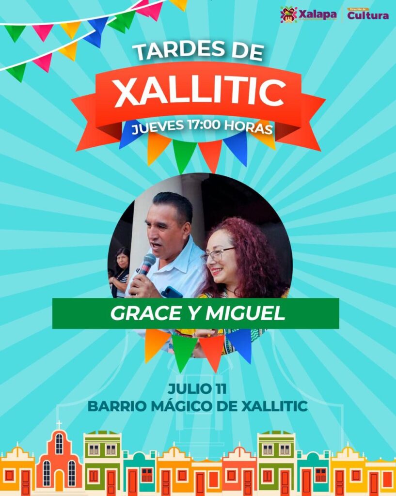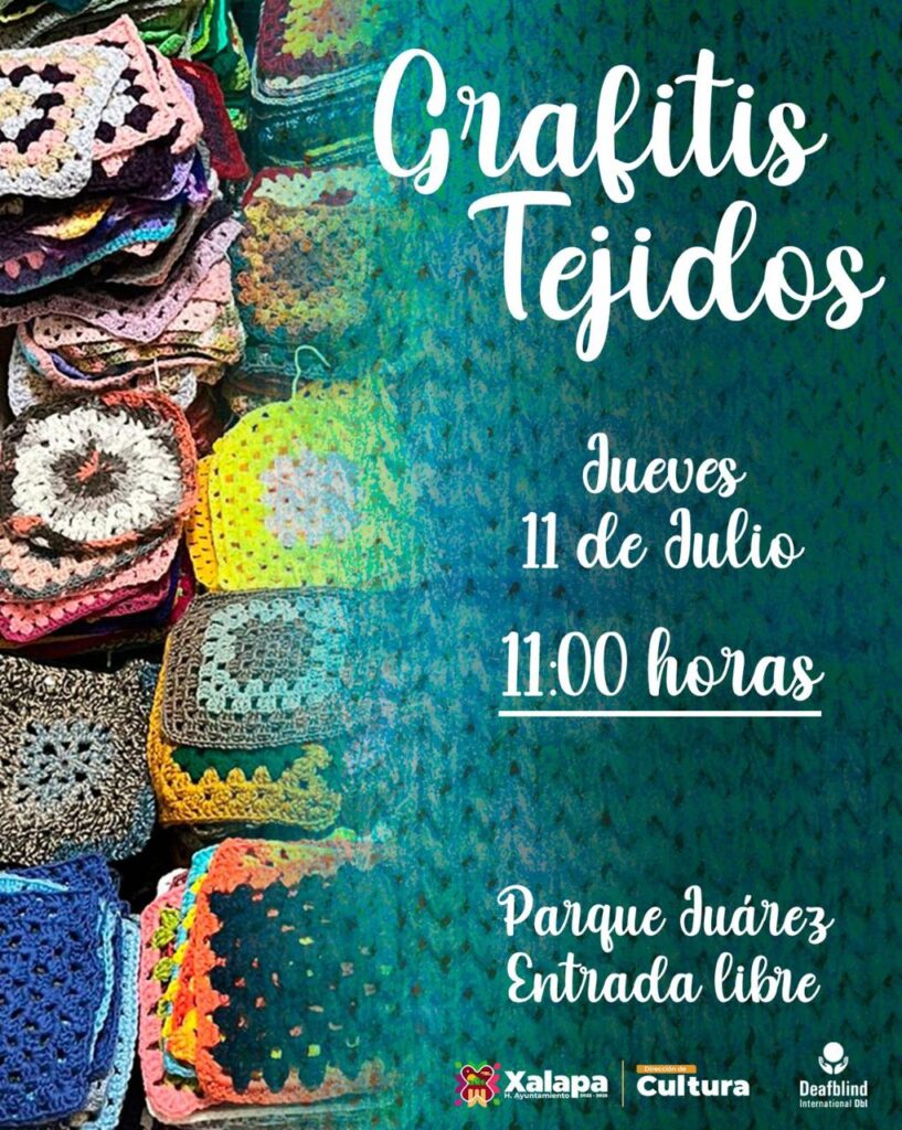 Todos los jueves del mes en el parque Benito Juárez se realizará “Grafitis tejidos”, y este 11 de julio, a las 17:00 horas, Grace y Miguel estarán en las “Tardes de Xallitic”; a las 19:00 horas, la Compañía de Danza ADC celebrará su quinto aniversario, y a las 18:00 horas en el Museo de la Música Veracruzana estará el Ensamble Folklórico Nacional DDA SEV.