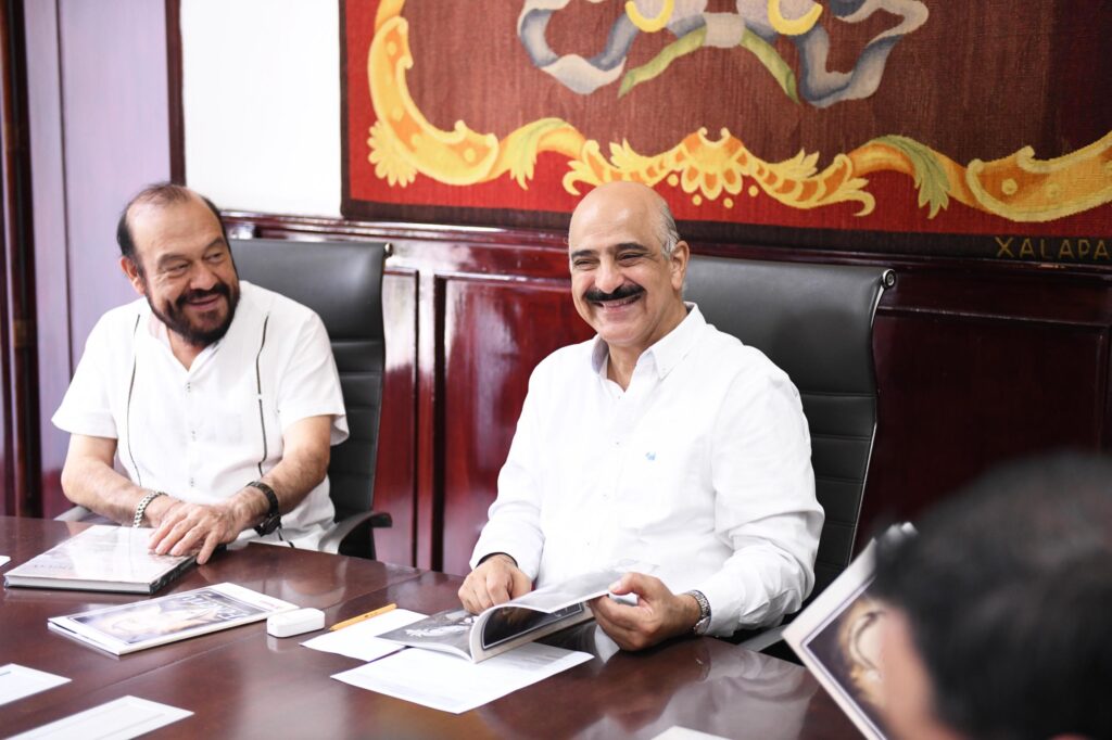Xalapa, Ver.- Con el fin de dar seguimiento a los proyectos de inversión, el presidente municipal Ricardo Ahued Bardahuil se reunió con integrantes de la Unión de Comerciantes del Mercado Jáuregui planta alta, encabezados por el secretario general, Nicolás Carmona Portilla, y el tesorero, Florentino Carmona.