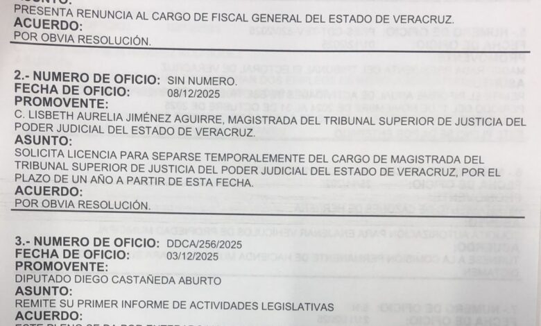 Para luego citar a una reunión de trabajo a las 5 de la tarde, donde se dará entrada a la propuesta de la gobernadora Rocío Nahle para nombrar a un nuevo fiscal general.