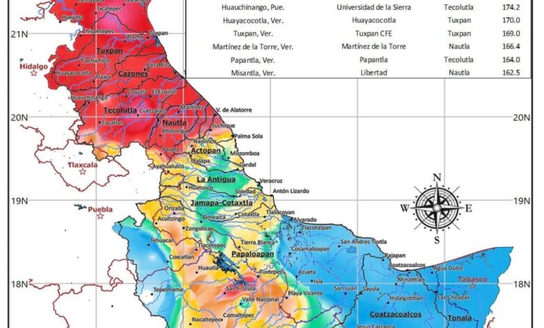 En su informe sobre el estado de los ríos y arroyos en Veracruz, donde se registran desbordamientos e incrementos en los niveles de agua debido a las lluvias acumuladas en las últimas 24 horas destaca que en incremento en sus niveles se contabilizan: