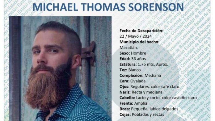 Se trata de Michael Thomas Sorenson, de 36 años, quien fue visto por última vez en el Fraccionamiento Las Gaviotas el pasado 22 de mayo.