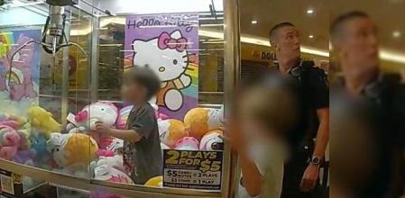 Redacción Xalapa.- En un centro comercial de Australia, un pequeño de tres años quedo atrapado en una máquina de peluches.