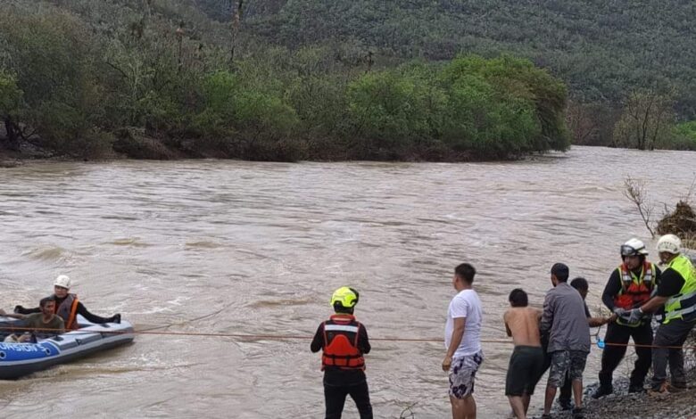 Rescatan a tres adultos y un menor atrapados por el río Chihue en Tamaulipas