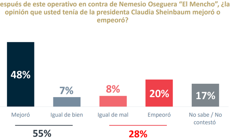 Revela encuesta que 8 de cada 10 mexicanos aprueban el operativo que se llevó a cabo para la detención de «el Mencho»