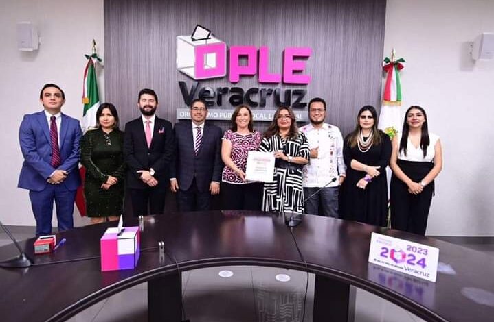 Acompañada de cientos de militantes y los dirigentes partidistas entregó la documentación para que pueda aparecer en la boleta electoral del próximo 2 de junio.
