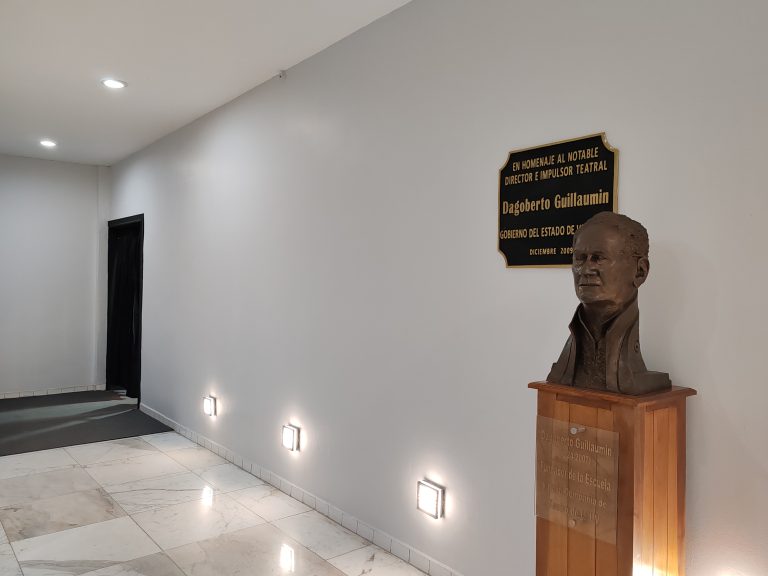 La sala Dagoberto Guillaumin recibió este nombre en 2009, honrando la memoria del maestro y director teatral veracruzano, originario de Córdoba, quien contribuyó sustantivamente al desarrollo de las artes escénicas en el estado.