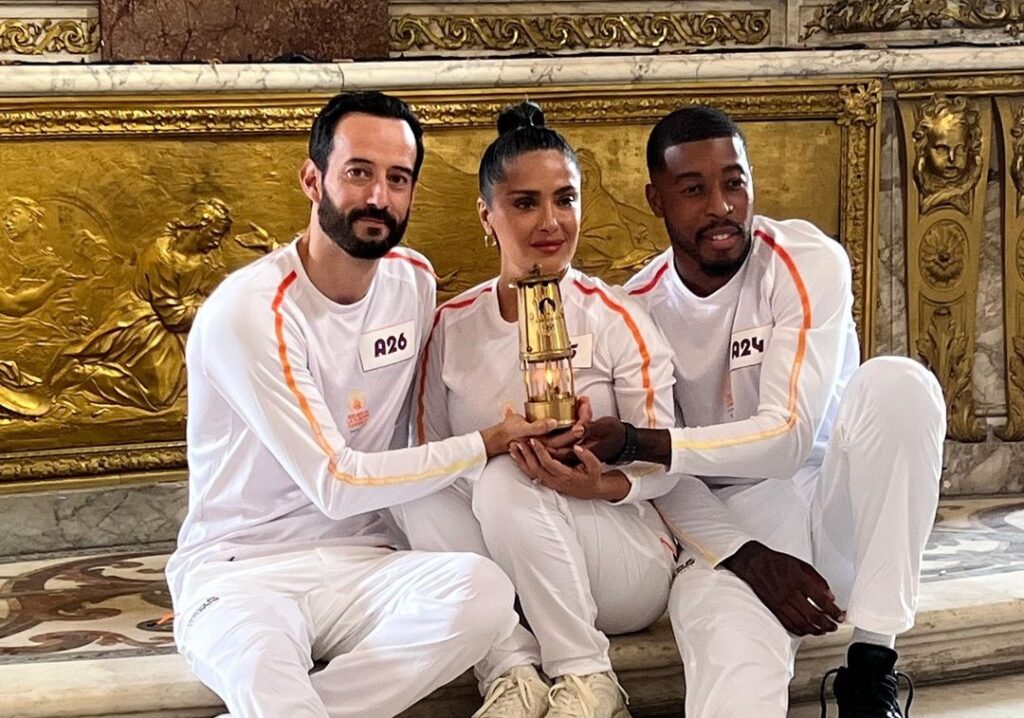 Salma Hayek representó a los latinos portando la llama olímpica para París 2024
