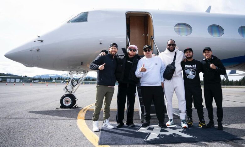 Álvarez, a través de sus redes sociales, compartió su llegada a los caminos de Nevada acompañado de todo su equipo de trabajado en un avión privado.