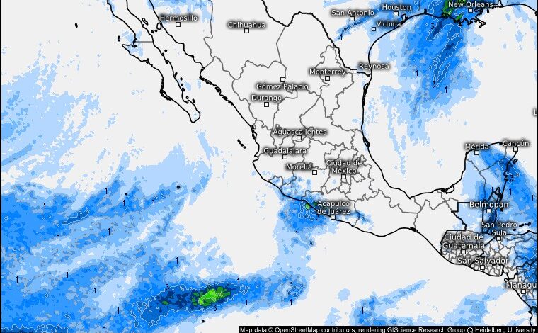 Lluvias acumuladas (mm) en los observatorios meteorológicos de la CONAGUA: no se registraron lluvias.